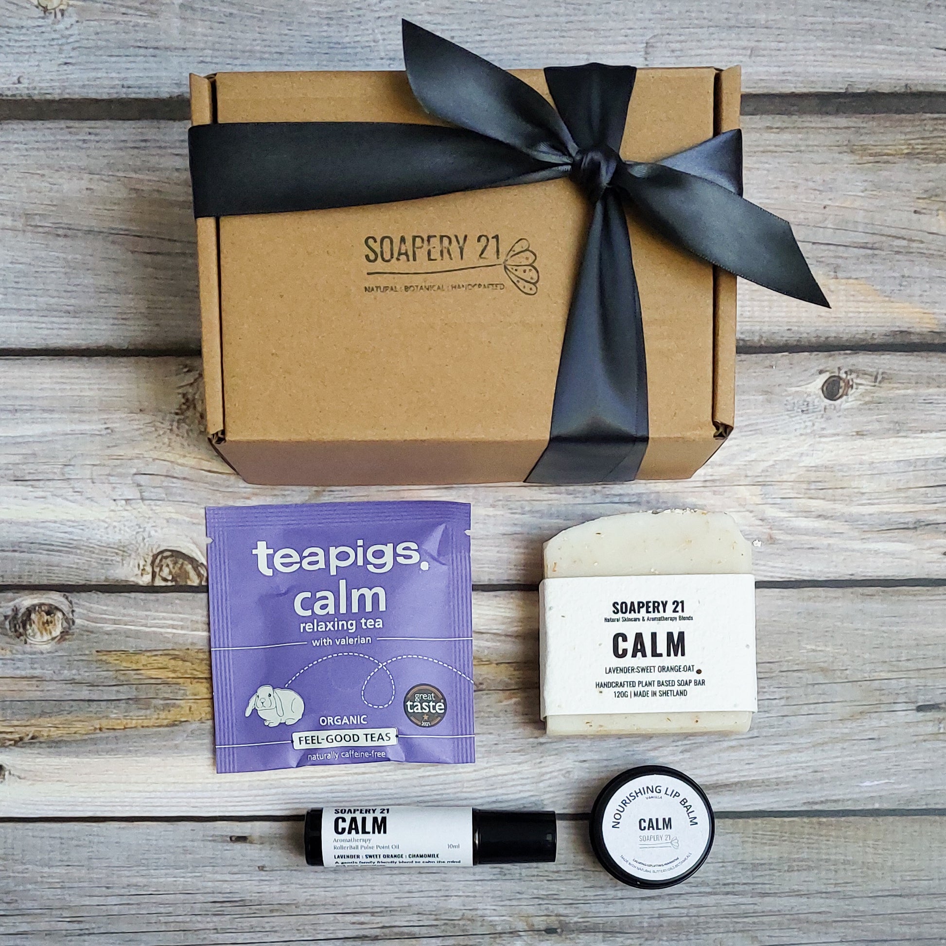 A gentle trio of Calm Rollerball, Lip Balm & Soap Bar, plus a Teapigs Calm Tea Pod, to nurture relaxation, soothe the senses, and create a peaceful moment — perfect for self-care or thoughtful gifting.